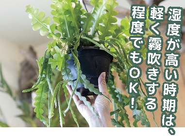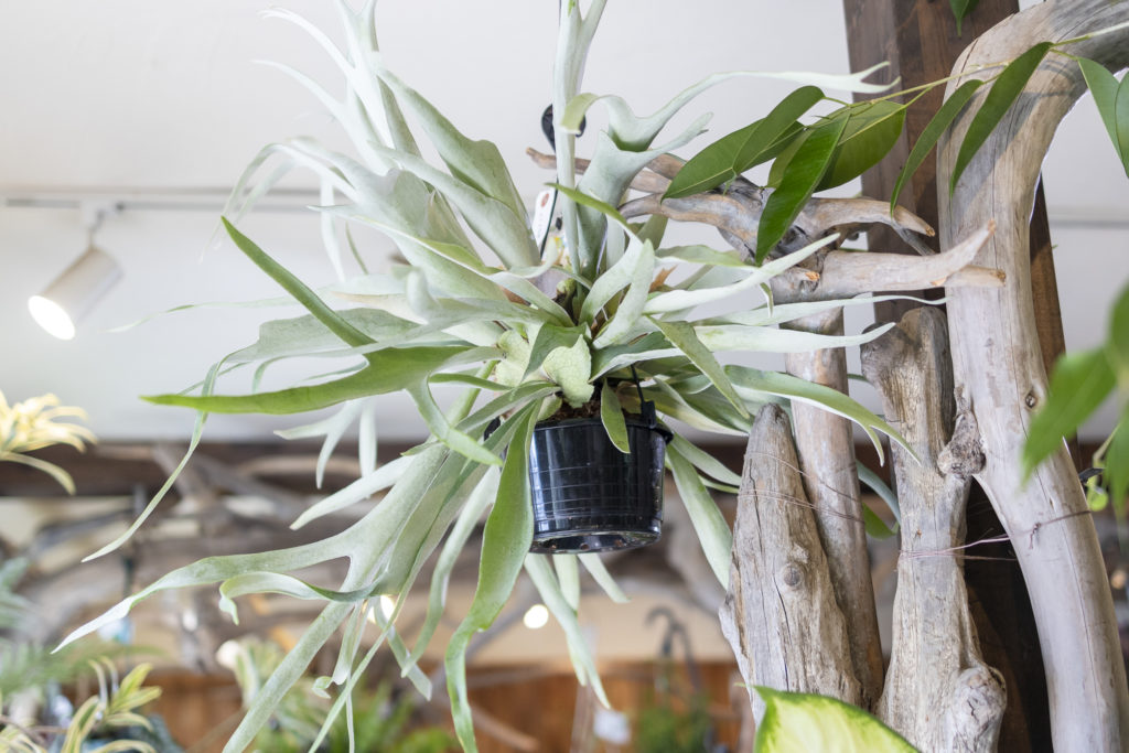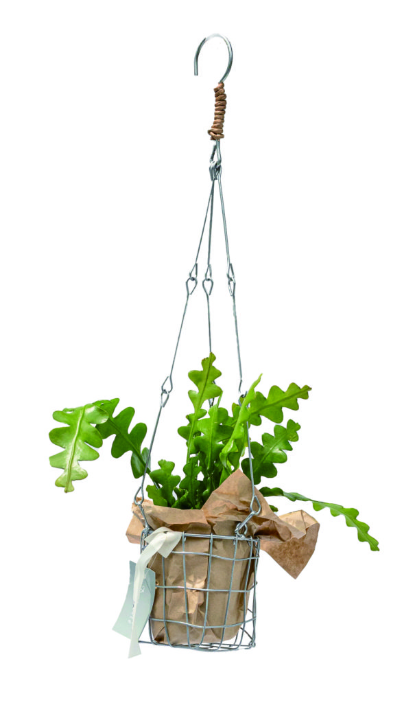 魚の骨のような葉姿が、吊るすだけで空間のアクセントに。