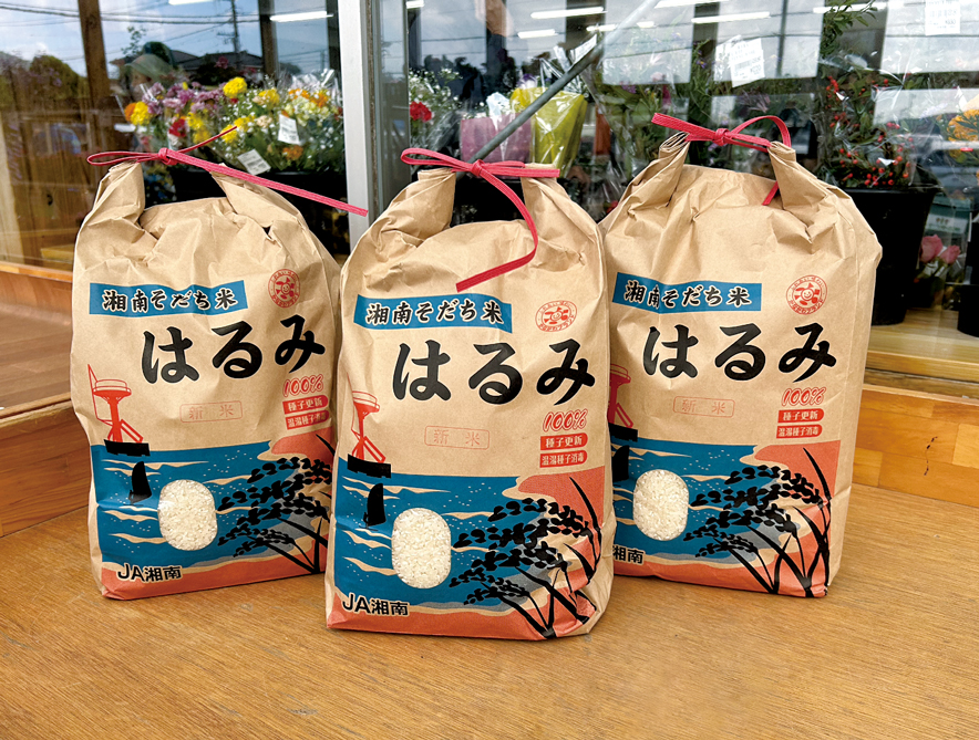 湘南の自然に育まれた「はるみ米」は優しい甘みとつやが自慢。減農薬に取り組み、環境にも人にも優しく、安心とおいしさがぎゅっと詰まっているかながわブランドのお米です。