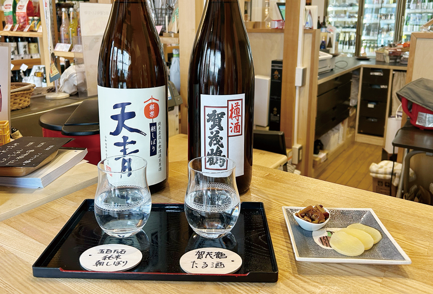 角打ちができる酒屋「つちや商店」では、約5種の日本酒に加え、クラフトビールやワインなど幅広い酒を気軽に味わえる。贈り物選びの試飲や待ち合わせ、軽い2次会での利用も多く、世代を問わず親しまれている。2杯とおつまみがお得に楽しめるせんべろも人気。半量での提供やこだわりのおつまみ、ジュース、子ども用のおもちゃなどもあるため、飲めない人や家族と一緒でも立ち寄りやすい一軒。
